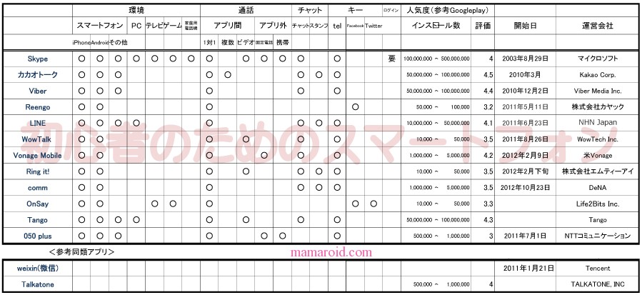 無料通話アプリ比較一覧